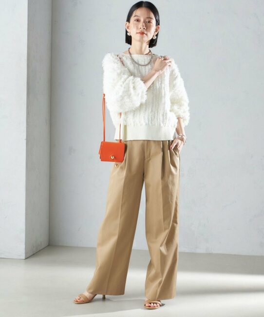 - 腰回りが少し隠れる安心丈ニットでスタイルよく見せる