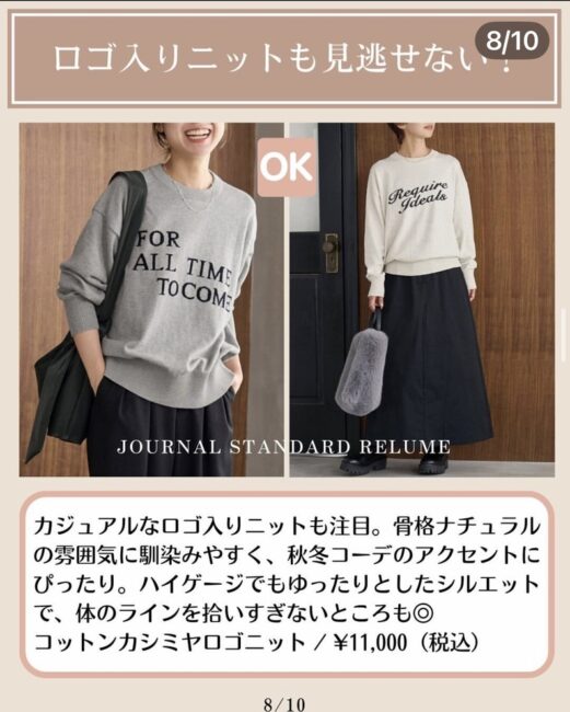 出典:Rakuten Fashion(JOURNAL STANDARD relume(ジャーナルスタンダード レリューム)コットンカシミヤロゴニット)