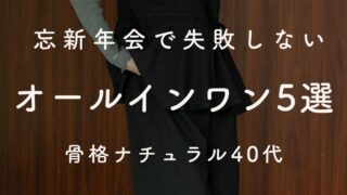 骨格ナチュラル40代|忘新年会で浮かないオールインワン5選【きれいめ&楽ちん】
